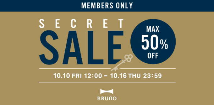 BRUNO では、会員限定のシークレットセールが開催されています。