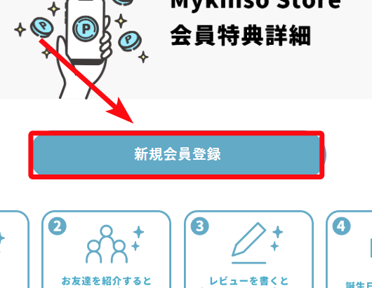 招待コードを受け取る → 新規会員登録 → 商品購入時に招待コードを入力 → 商品を購入 → 500ポイントプレゼント