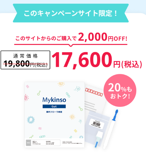 マイキンソーの腸内フローラ検査キットが、今だけ2,000円OFF+送料無料で手に入ります。新規登録500ポイントと紹介コードを併用すれば、初回2,500円お得に腸活スタート可能です。