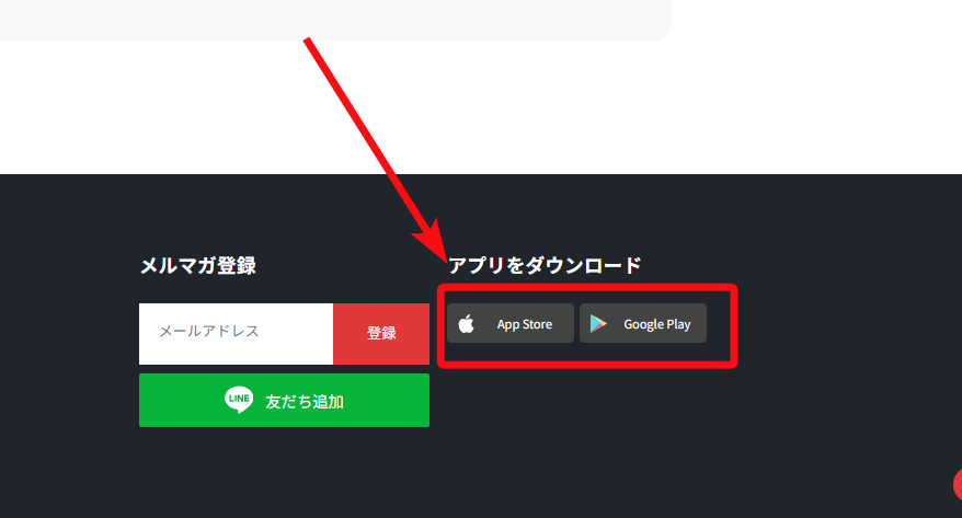 1 公式サイト最下部「メルマガ登録」にメールアドレスを入力して登録をクリック