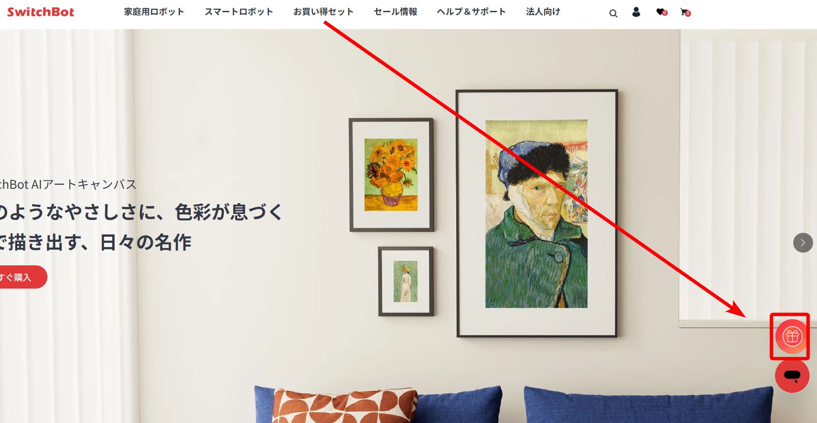 1 公式サイトの右側にプレゼントのイラストバナーをクリック