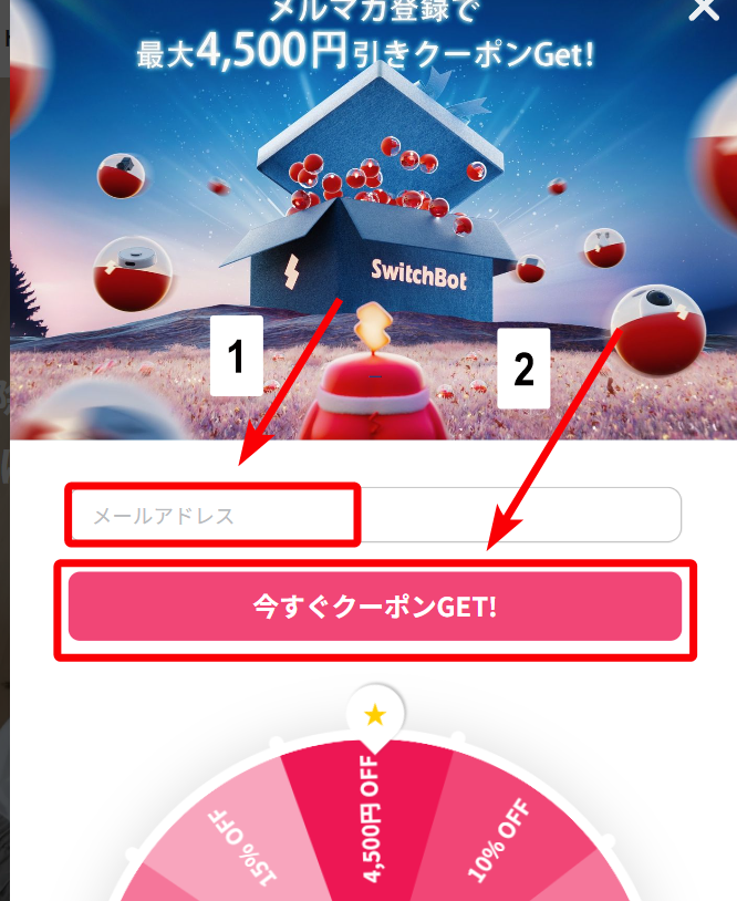 【SwitchBot公式サイト】 でメルマガ登録&ルーレットを回すと、Max45%OFFクーポンコードを取得できます♪