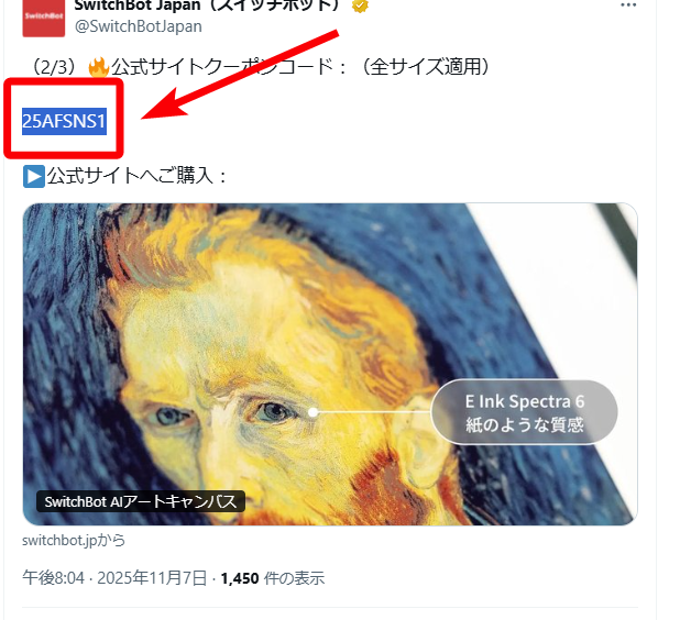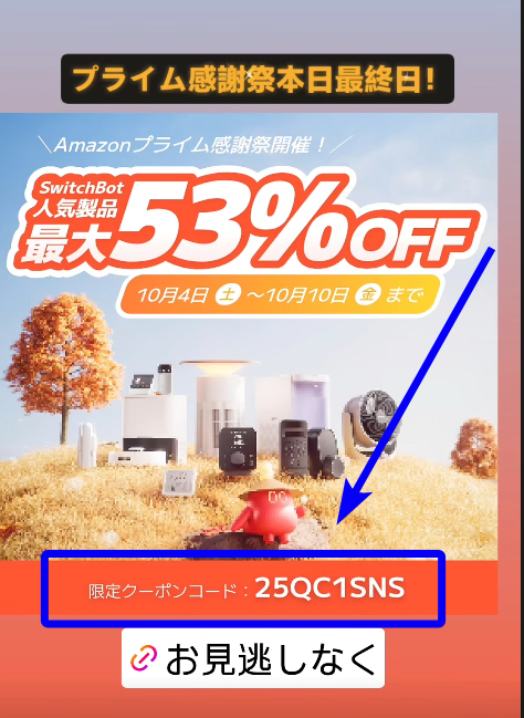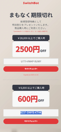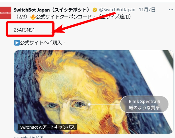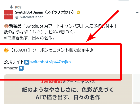 SwitchBot(スイッチボット)公式Xではクーポンコードが掲載されることがあります。