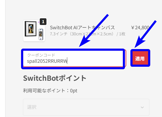たとえば、SwitchBotロボット掃除機 S10を購入すると4,000円OFFクーポンを取得できるポイントをGETでき次回13,000円以上の購入でつかえます。