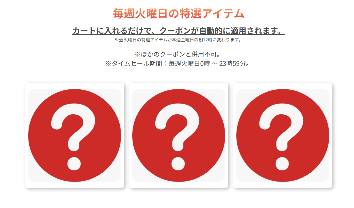※翌火曜日の特選アイテムが本週金曜日の朝12時に変わります。