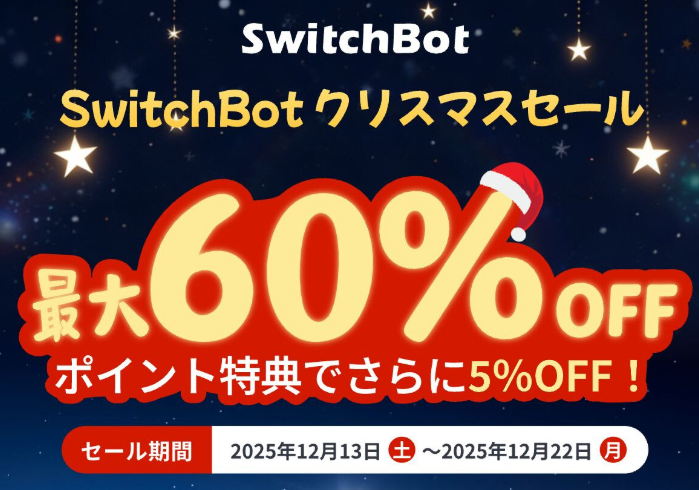 SwitchBot(スイッチボット)では不定期にタイムセールを実施しています。
