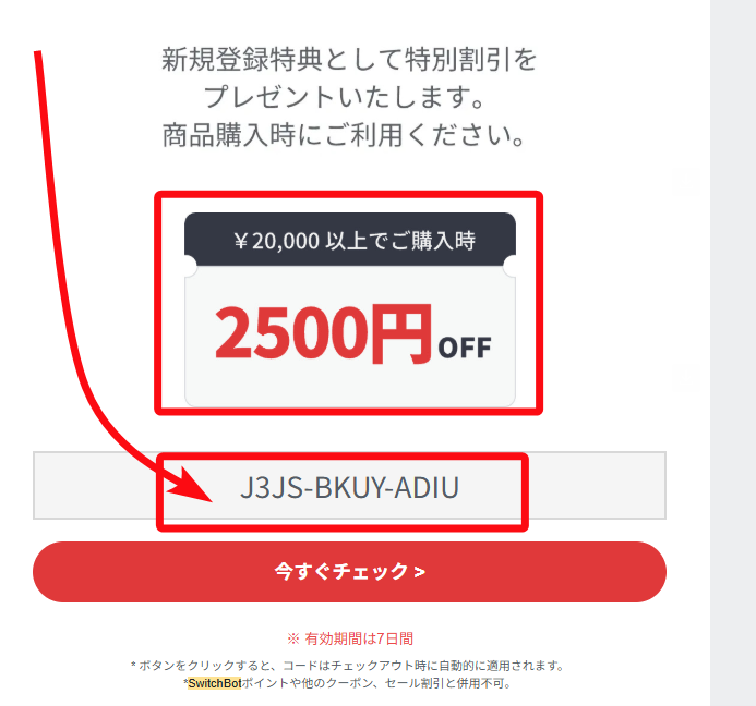 【SwitchBot公式サイト】 でメルマガ登録をするとすぐ使えるクーポンコードを取得できます。
