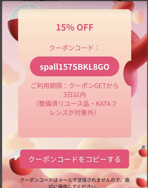 「新製品まとめ」をタップすると、クーポンコードが発行されていることがありす。