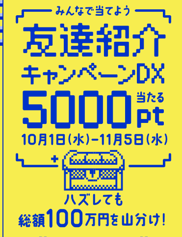 当たれば5,000ポイントが友達とあなたのどちらにも付与されるよ!