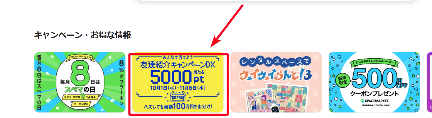 スペースマーケット 大型クーポンはいつ発行?狙い目