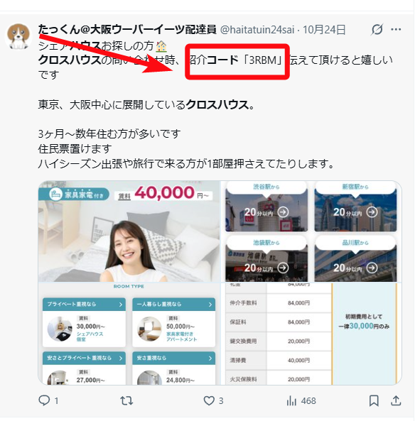 クロスハウスの紹介コード:3RBM![]()