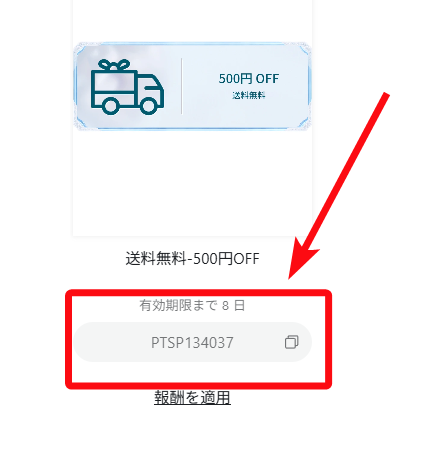 3.同じくつづけて、ポイントプログラムで取得した「送料無料クーポンコード」をコピー&貼り付け入力