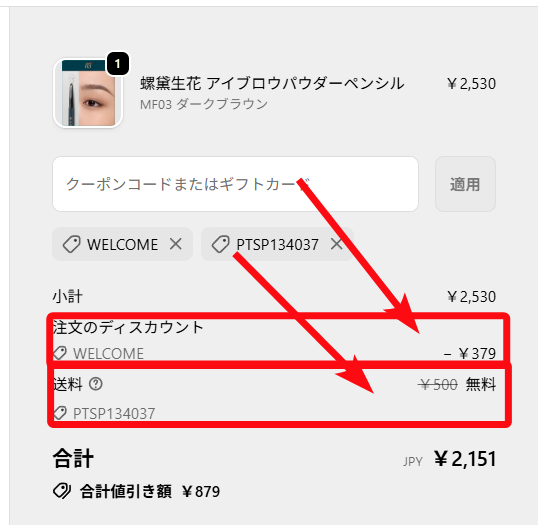 筆者が試したときは、2つのクーポンコードを同時に使うことができました。