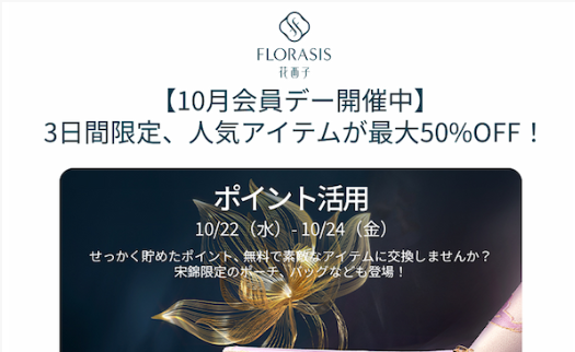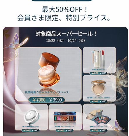 花西子(フローラシス)では、定期的に会員限定会員の日セールを実施しています