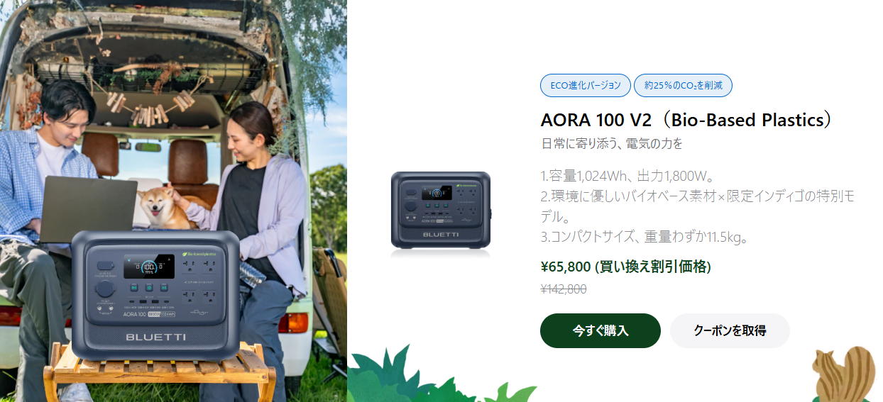 「最大77,000円お得!BLUETTI AORA 100 V2 買い換え割引で半額以下に」