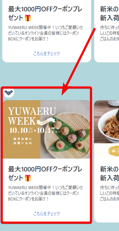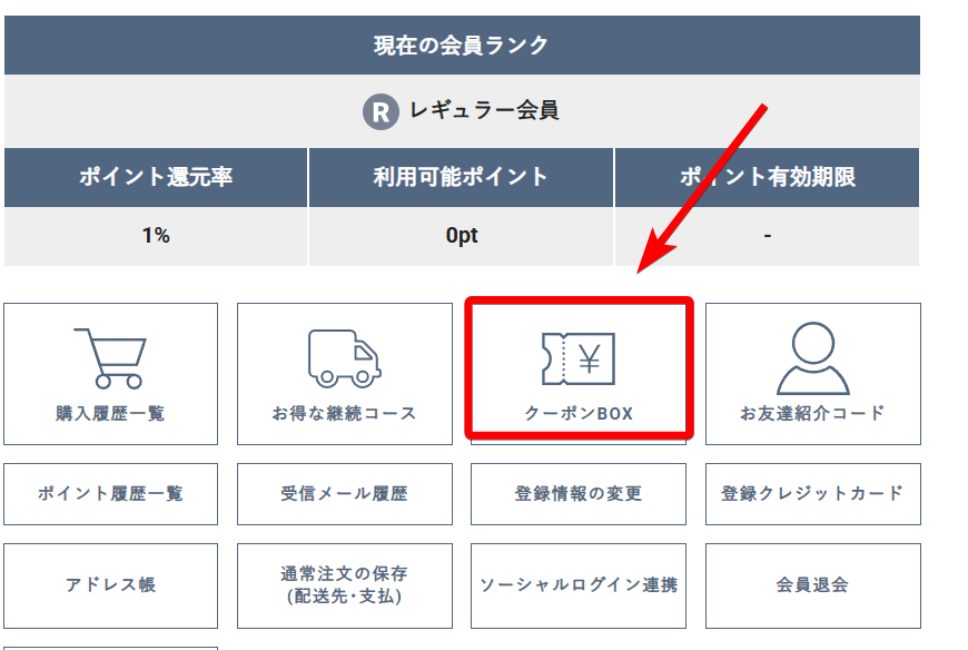 クーポンはマイページ>クーポンBOX に付与されますので、チェックしてみて下さい▼