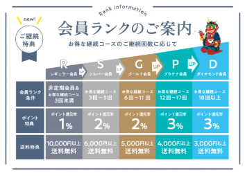 定期コースは継続するほど、会員ランクが上がって送料がお得になります。