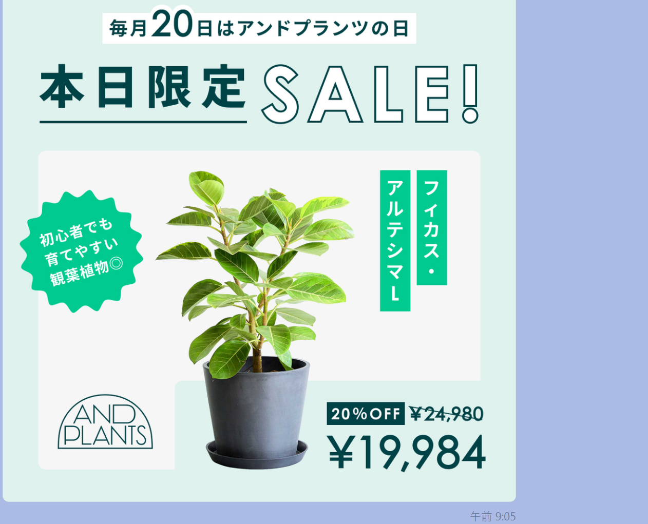 最新のセール情報は、ANDPLANTS(アンドプランツ)WEBサイトで確認できます。