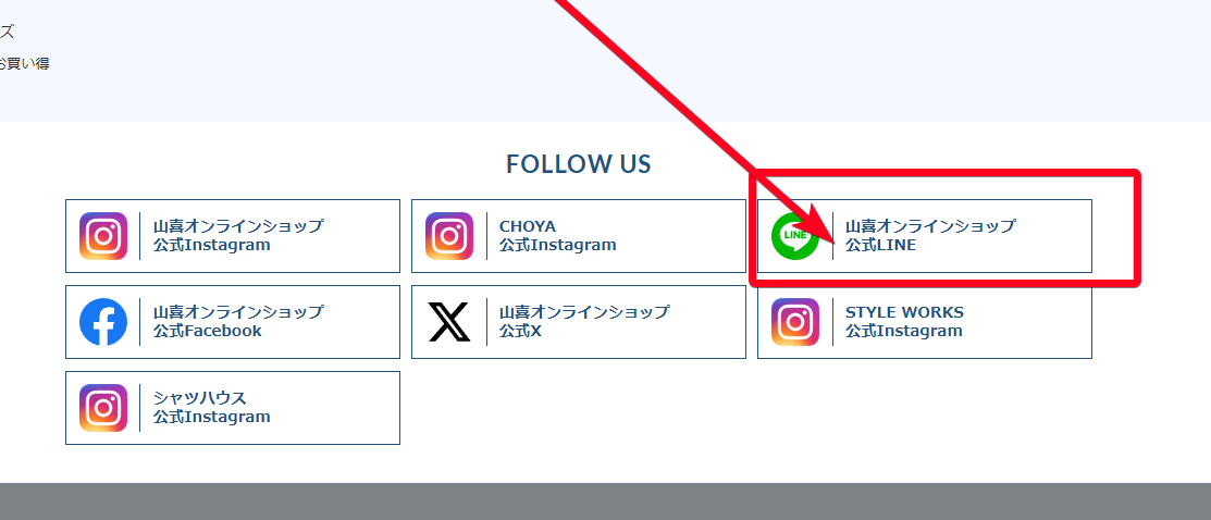 1.公式サイトTOPページ最下部LINEアイコンタップ