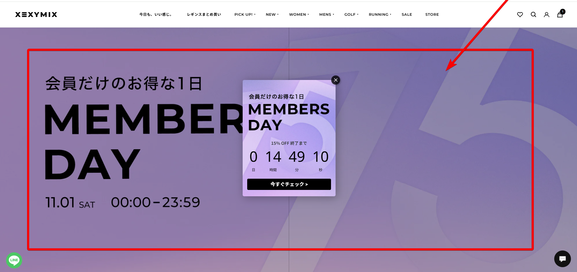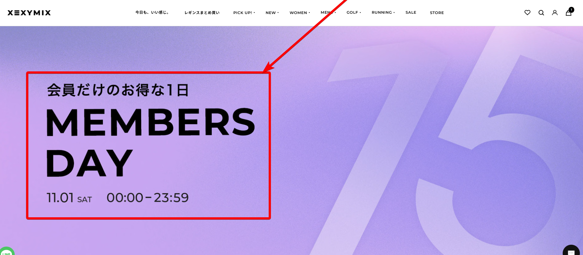 当日になると、公式サイトのトップページ上部にクーポンバナーが登場します。