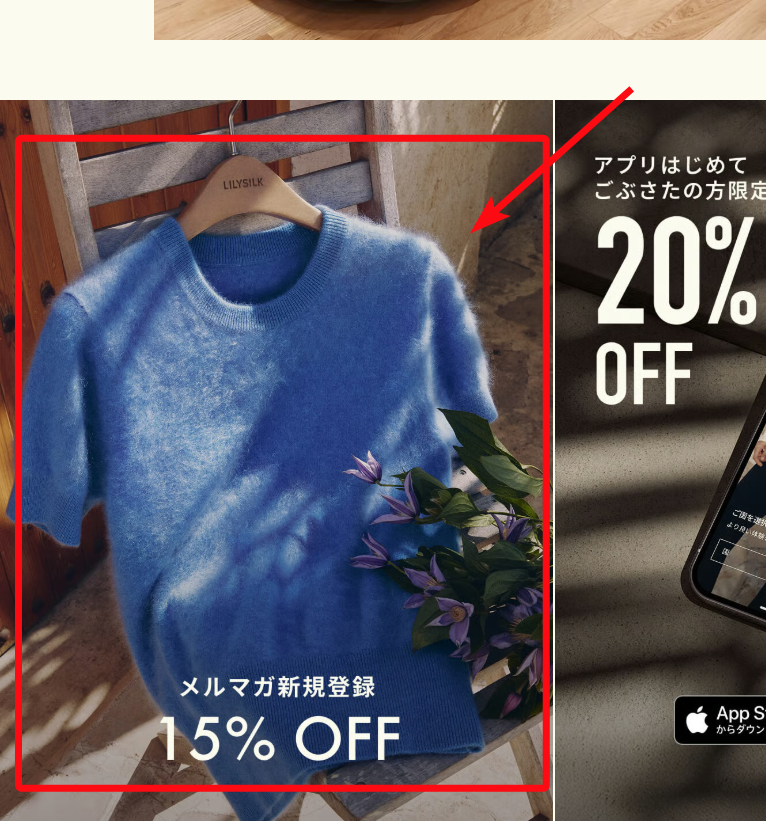 1.TOPページ最下部のメルマガ新規登録15%offのバナーをクリック
