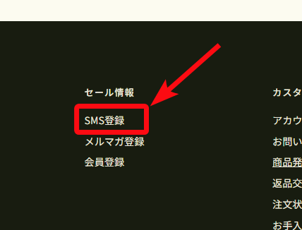 1.TOPページ最下部のSMS登録をクリック