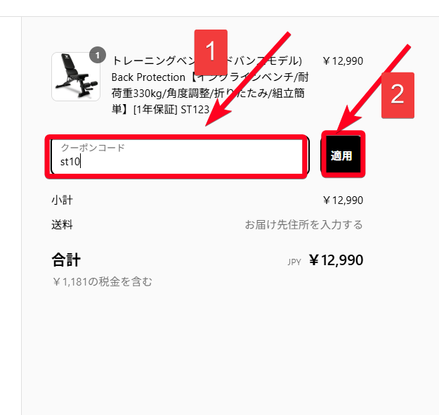 2.クーポンコード欄に上記のクーポンコードをコピー&貼り付けして入力