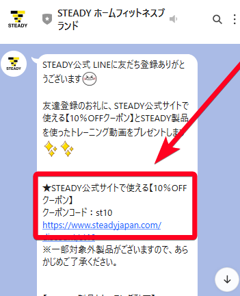 2.登録後、トーク画面に即座にクーポンコードが表示されます。