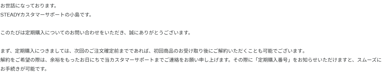※ただし余裕を持った日にちで連絡しましょう!※定期購入番号が必要になります