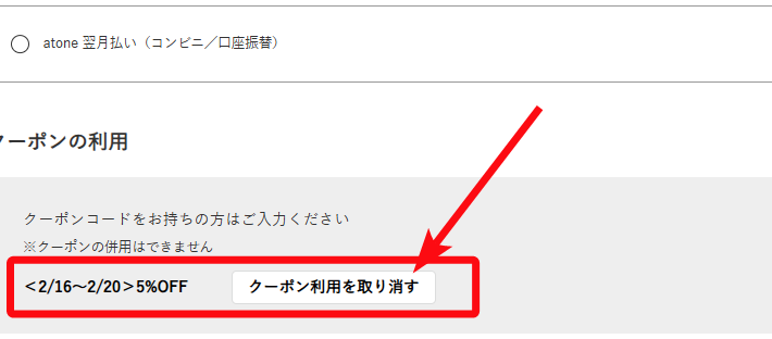 2.お支払方法を選択した後「クーポンの利用」箇所にクーポンコードをコピー&貼り付けして入力して下さい。