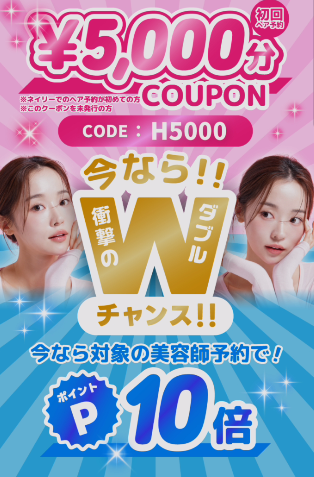 ヘア予約スタート記念ヘア予約で使える【¥5,000分クーポン】