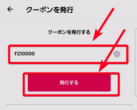 3.クーポンコードをコピー&貼り付けして「発行する」をタップ