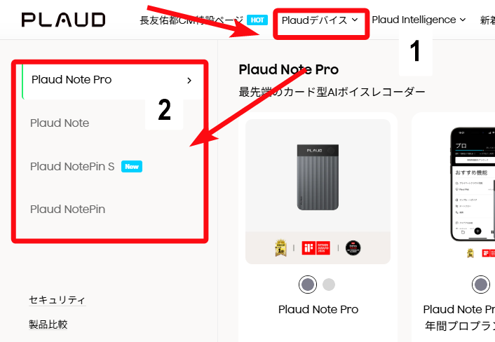 トップメニュー「PLAUDデバイス」>商品をえらぶ>本体・セットプランをえらぶ