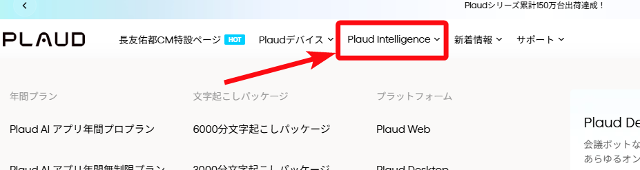 ① TOPページ上部バナー「Plaud Intelligence」