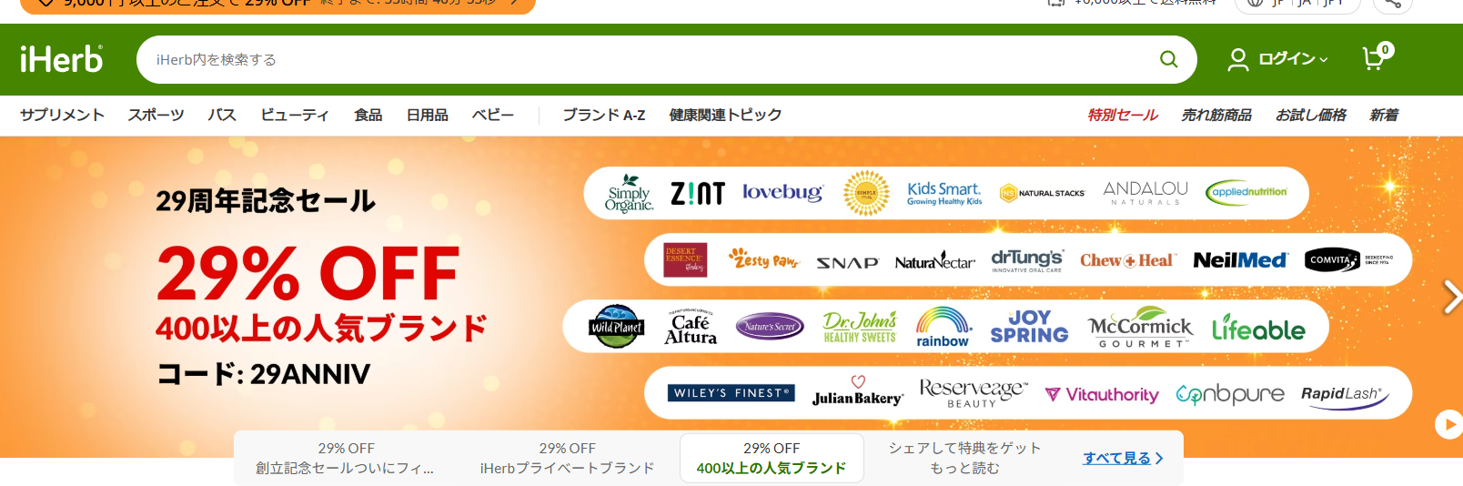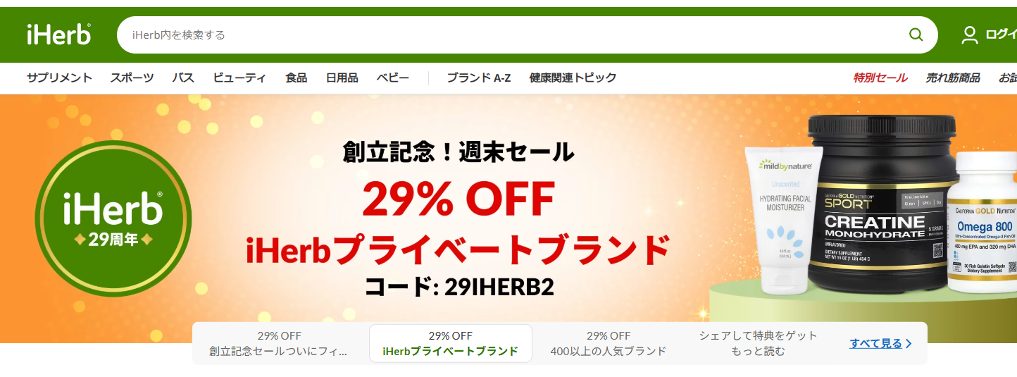 最新情報は、アイハーブ(iHerb)公式ショップTOPページからチェック!