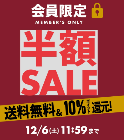 ・(半額)会員シークレットセール(12/6AM11:59まで)