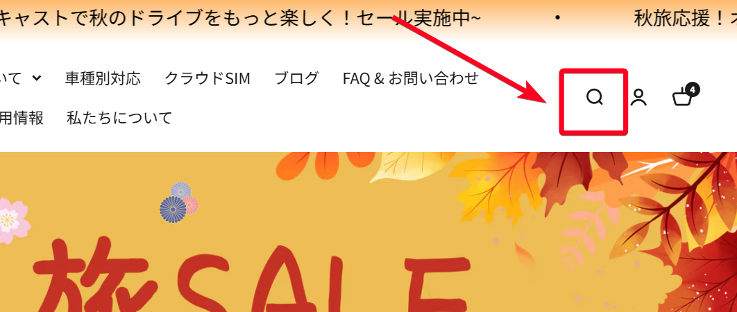 1.ottocast公式ストアTOPページ上部「虫眼鏡」をタップ