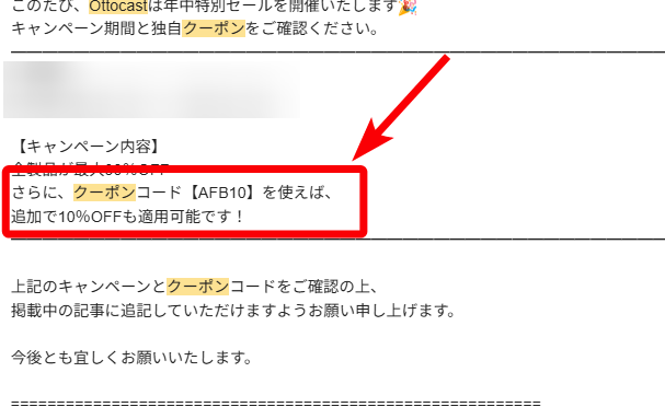 購入時にクーポンコード入力欄で忘れずに入力すること!