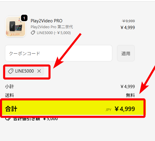 例】LINEクーポンコード5,000円OFFをつかうと更に5,000円割引など