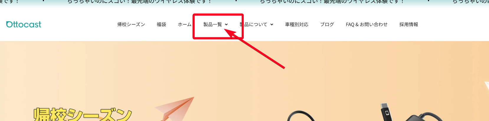 ottocast(オットキャスト)の全ての商品は、ottocast(オットキャスト)メニュー上部の「製品一覧」から確認できます。
