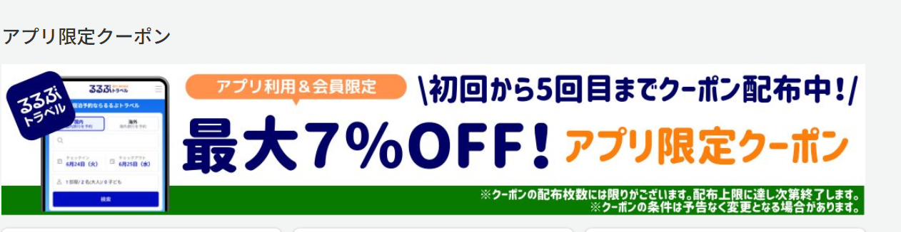 るるぶトラベルでは、検索条件に応じて、一番お得なクーポンが自動適用されます。