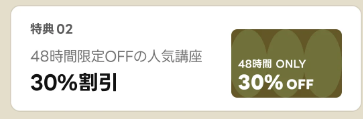 ✅48時間ごとに講座が入れ替わり受講料金が30%OFF【※対象講座のみ】