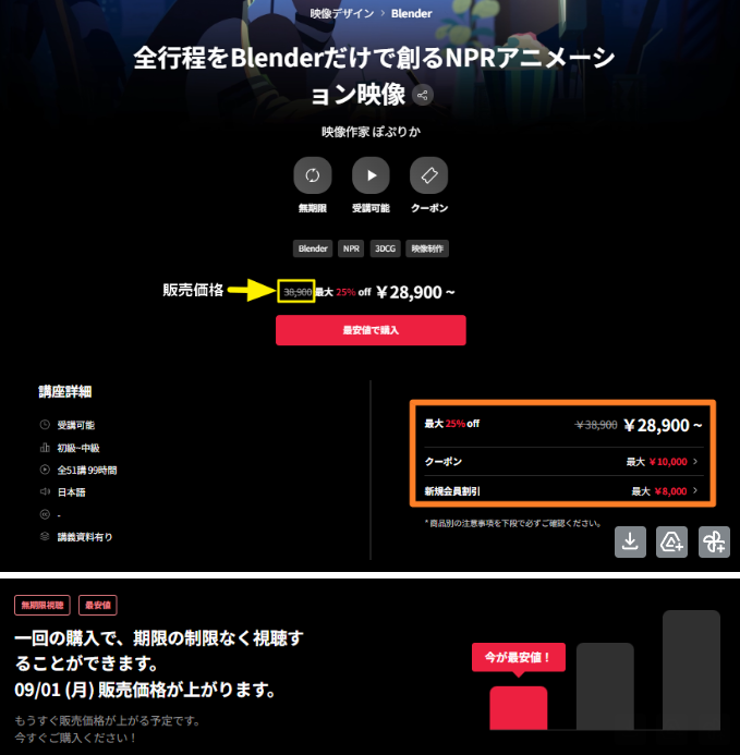 気になる講座は「早めの購入」が鉄則。迷っているうちに1万円以上値上がりすることも!