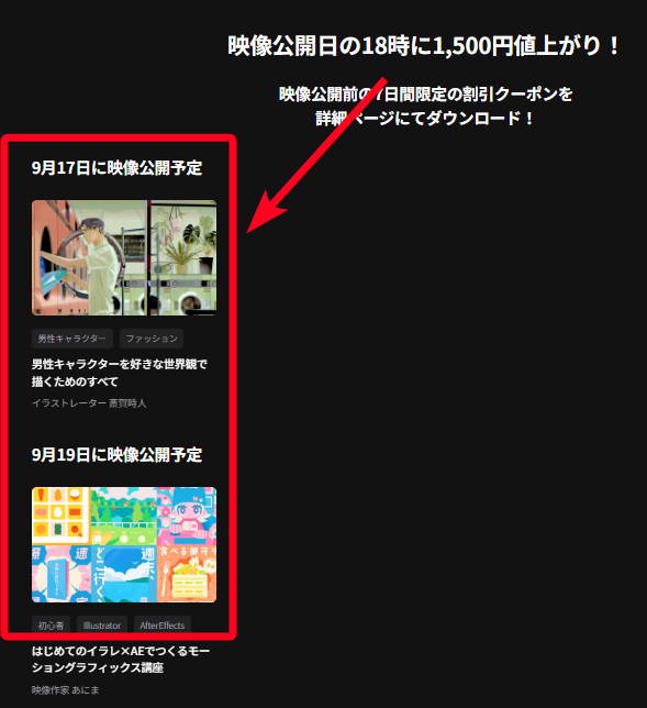 ⭐「イラスト・映像・音楽・クリエイティブ・ゲーム制作」分野のクーポンコードが現在発行されています。