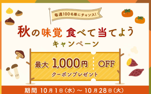 この秋は、ポケマルで対象カテゴリの旬食材を選ぶだけで、最大4,000円分クーポンゲットも目指せます。ハロウィン当日も要チェックです!