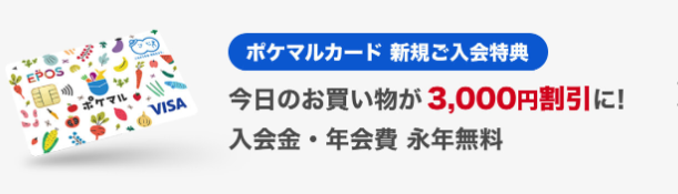 ポケマルエポスカードは、年会費永年無料のクレジットカードで、18歳以上で審査に通ればすぐに発行できます。「初回購入3,000円割引」と「利用金額1%分が生産者支援に自動寄付される」などの特典があり、生産者支援に共感し、応援をしながらポケマルでの買い物をよりお得にしたい方」に最適なカードです。