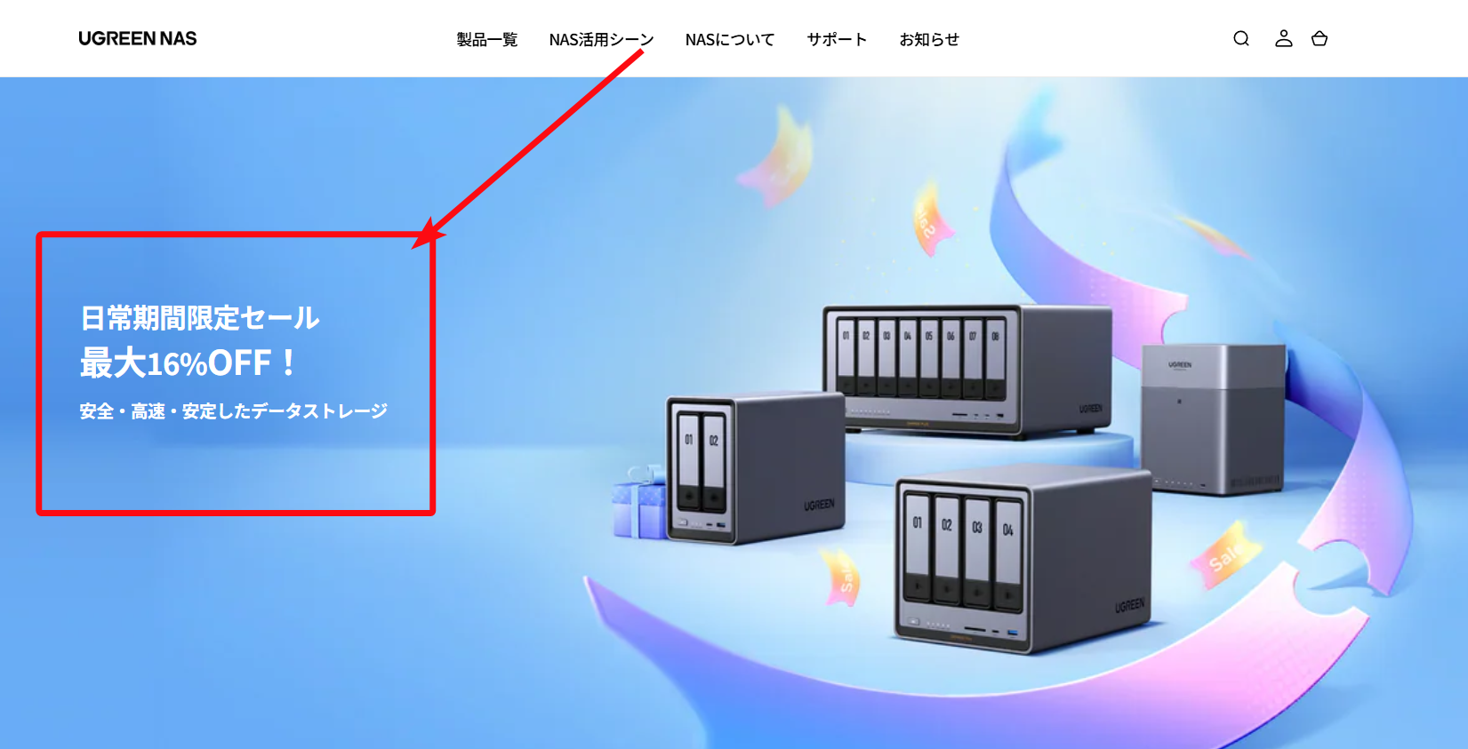 結論:現在、UGREEN日本公式サイト(nas.ugreen.jp)で最大23%OFFの期間限定セール開催中。
