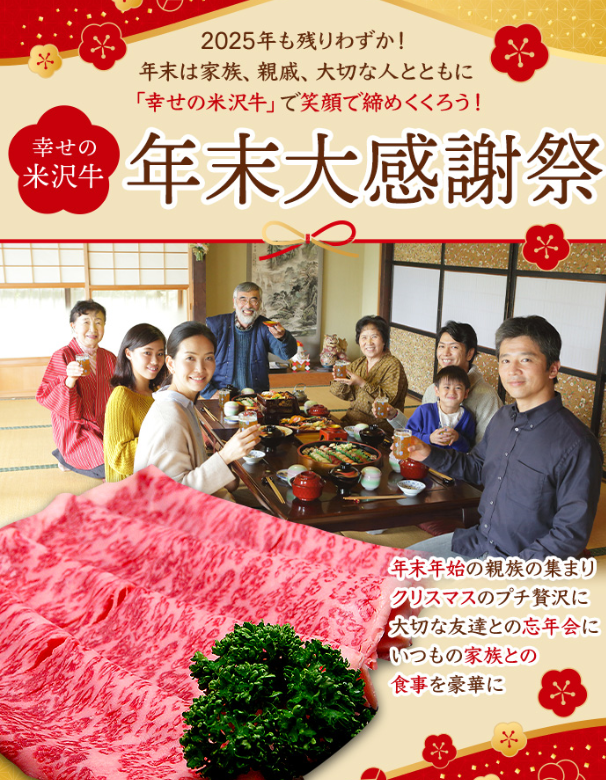 贈答用としても喜ばれる高級米沢牛が、お得に手に入るチャンスです。