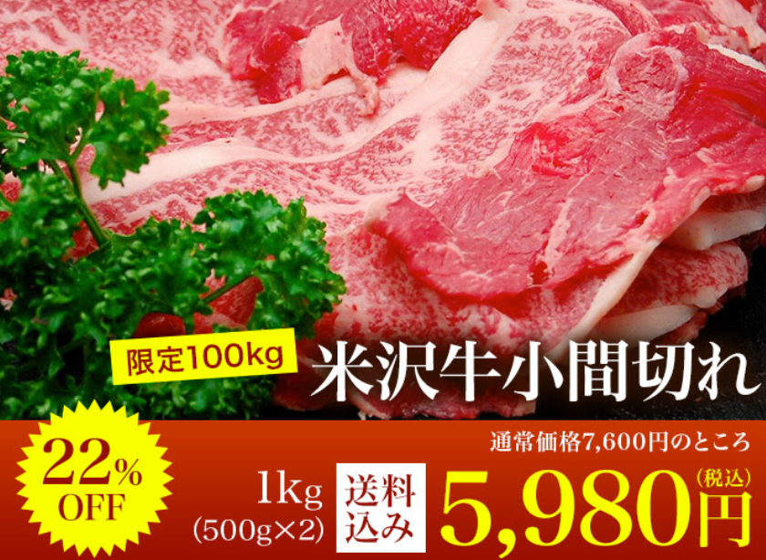 米沢牛小間切れ1kg(500g×2)5,980円【税込】