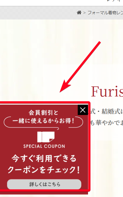 トップページ最下部「開催中の着物レンタルキャンペーン」からゲットすることができます。
